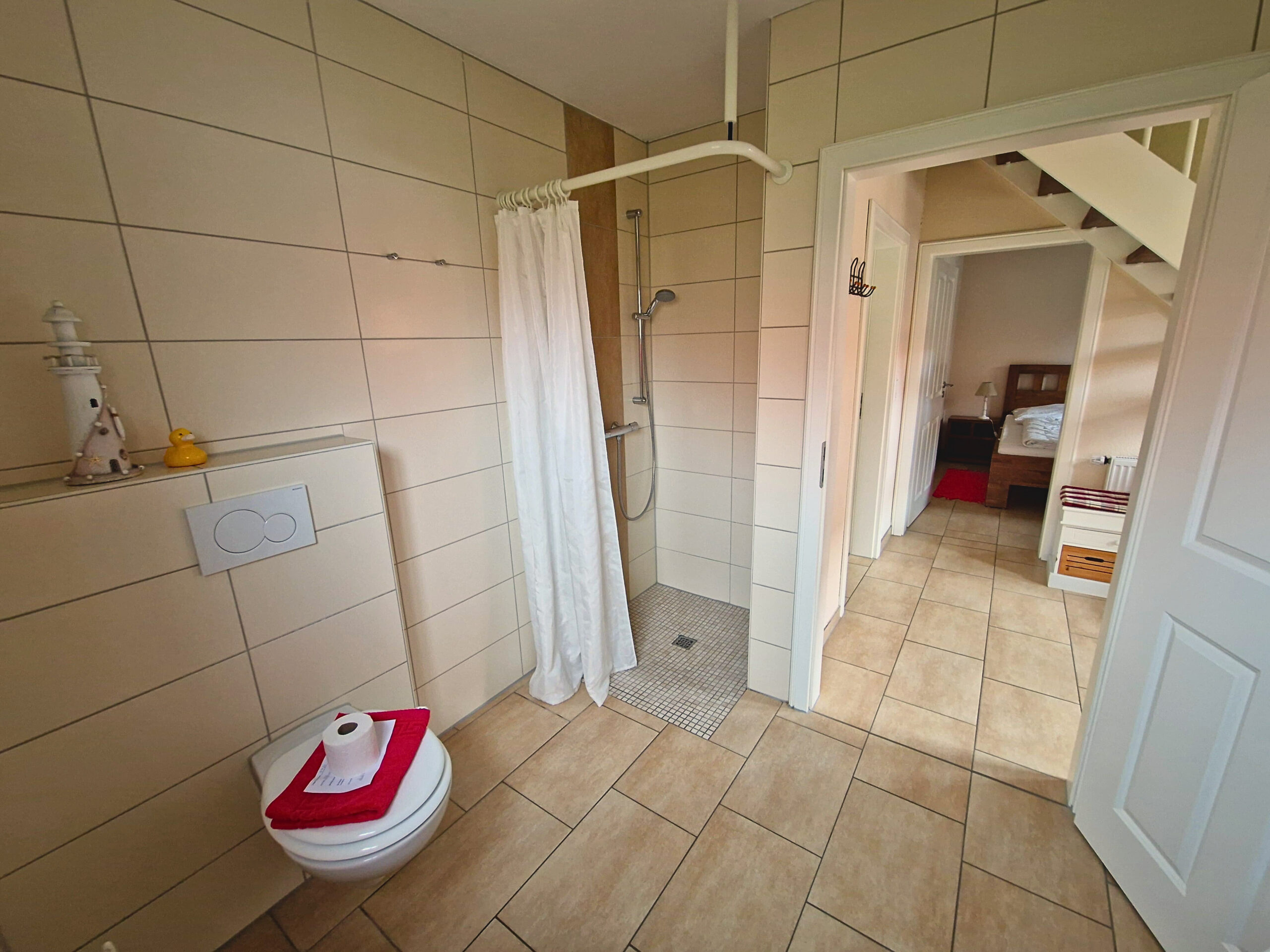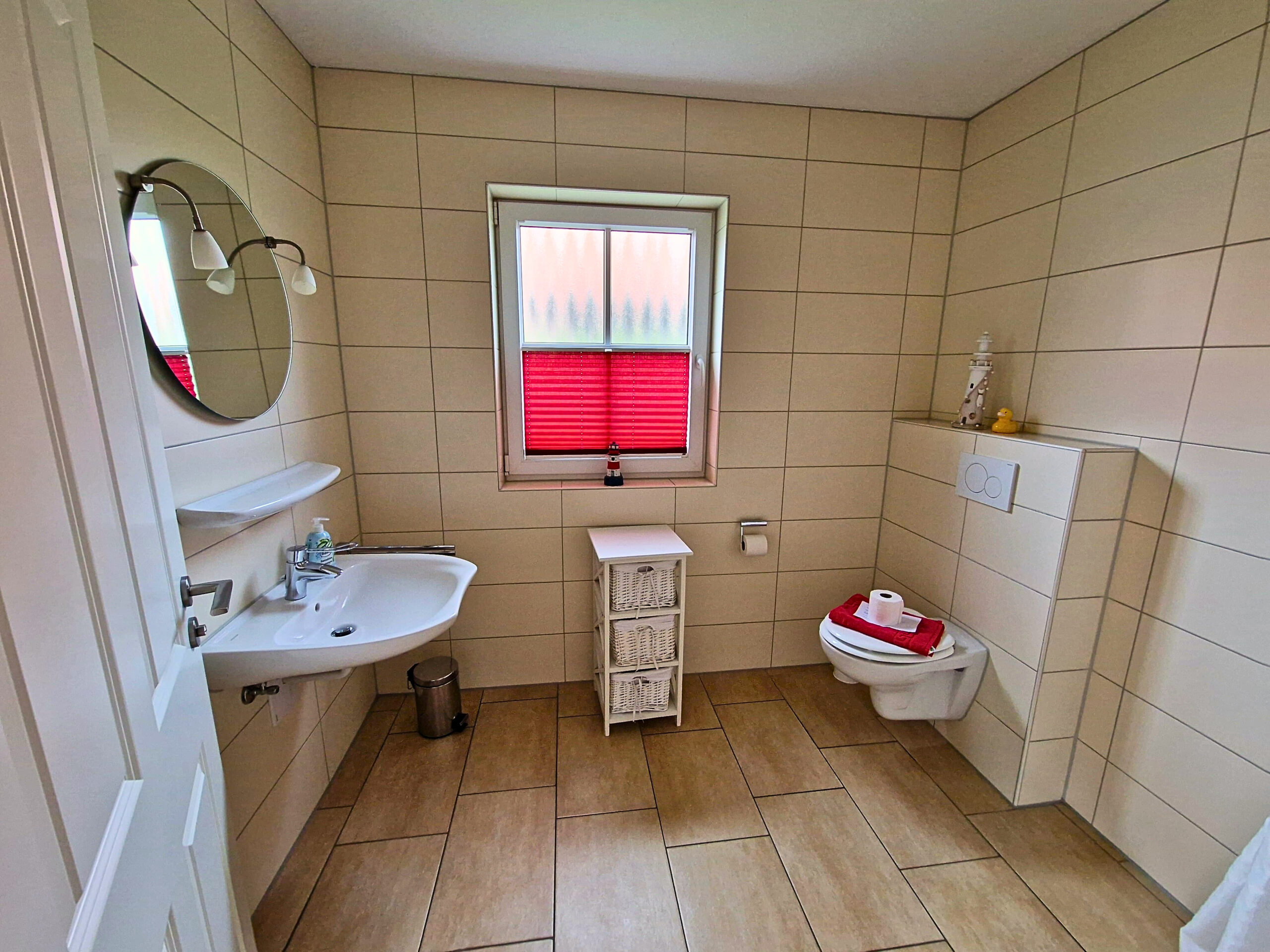 Zwischen den beiden Zimmern liegt das zweite Badezimmer mit Dusche, WC und Waschbecken.